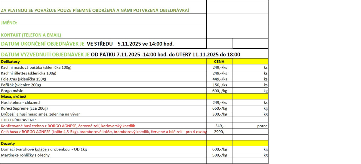 Vážení zákazníci, jako v letech předchozích, tak i letos pro Vás máme nabídku tradičních specialit k příležitosti oslav svátku Svatého Martina.
